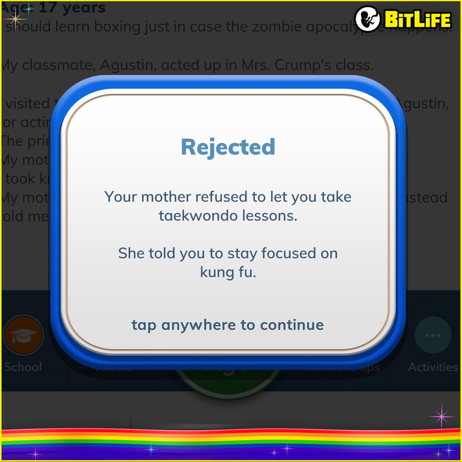 Bitlife On Twitter How Will I Become The Ultimate Martial Arts Fighter Destroyer Of All Things Not Good If You Won T Let Me Practice Mom Android Update Fighter Bitlife Https T Co 6pwgk4q1sa Twitter